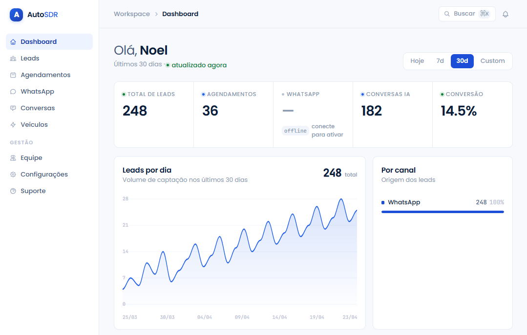 "O AutoSDR mudou o jogo na nossa loja. Agora não perdemos mais nenhum lead que chega de madrugada. No primeiro mês triplicamos as visitas."